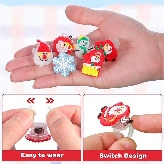 【全年齢対応・開口設計で多人共有 OK】伸縮性のある開口構造で、子供の細い指から大人の指まで幅広く対応する光る指輪。軽量設計で長時間装着しても負担がなく、子供用指輪としても、大人のパーティーアクセサリーとしても活用可能のクリスマス おもちゃです。