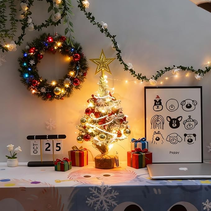 Vinnatsuクリスマスツリー 卓上 45cm 雪化粧 オーナメント付き LEDイルミネーションライト 電池式 卓上 ミニクリスマスツリー 足隠し 組立簡単 おしゃれ クリスマス装飾 クリスマスグッズオーナメント 玄関に 飾り ウェルカムツリーにも インテリア 用品 プレゼントに最適 (ゴールド) | etshop