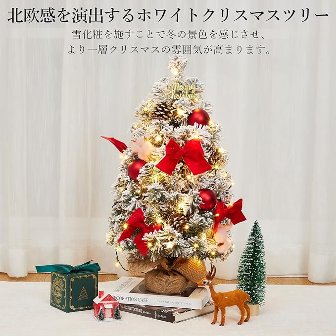 【麻布ベースの雪化粧グラデーションがおしゃれ】麻布をベースにしたナチュラルな風合いと、繊細な雪化粧グラデーションが特徴のミニツリー。足元までこだわったデザインで、インテリアの邪魔をせず、さりげなくクリスマスの雰囲気を演出します。