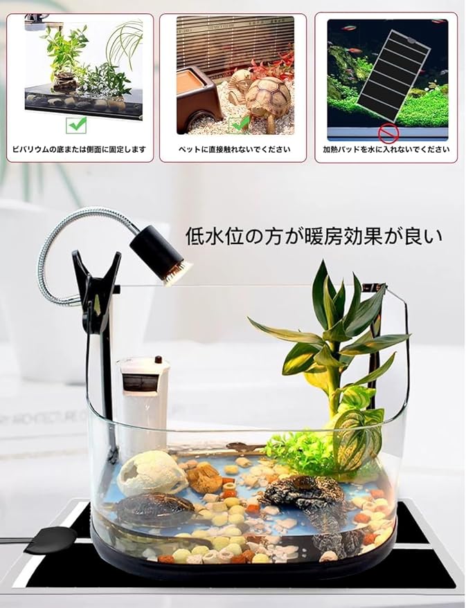 安全でバランスの取れた暖房: 爬虫類の暖房パッドは安全でバランスの取れた温度分布で、愛するペットや昆虫の繁殖に優しく暖かい熱を提供します。ご注意:爬虫類や昆虫をマットの上に直接置かないでください。