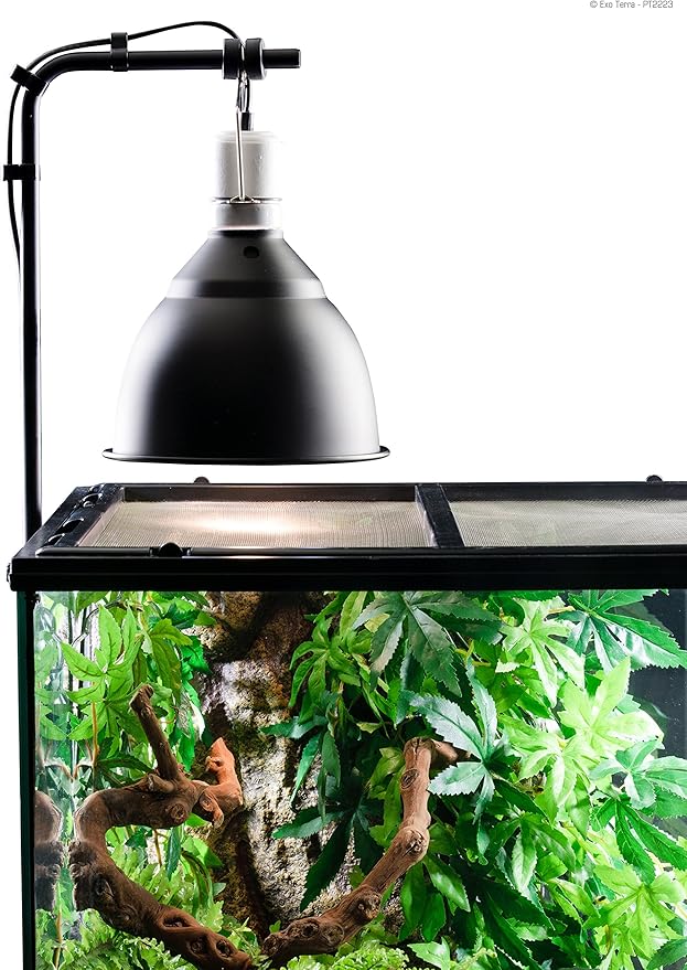 白熱球・UV球の照射に! 白熱球・UV球のどちらにも使用出来る爬虫類・両生類用照明器具。 ケージの上から照射することでケージ内を広く使え生体やメンテナンス時のヤケド防止になります。本体カバーはアルミ製で反射率が高く、ランプの光を効率よくケージ内に反射。便利な中間スイッチとライトブラケットに吊り下げるための専用ハンガー付。 必ず専用のライトブラケットを使用して吊り下げ、ランプを飼育容器から5cm以上離して設置してください。 75Wまでの白熱球、26WまでのUV球に使用可能。 適用口金:E26