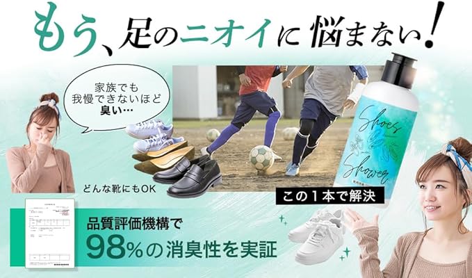 【家族全員の足元を清潔に】:旦那様やお子様など身内の強烈な足の臭いに悩む方にも最適。98%の悪臭をカットし、靴や靴下だけでなく、足そのものの臭い対策にも有効。靴内の湿気や菌の繁殖を防ぎ、家族全員がいつでも清潔で快適な足元を保つことができます。