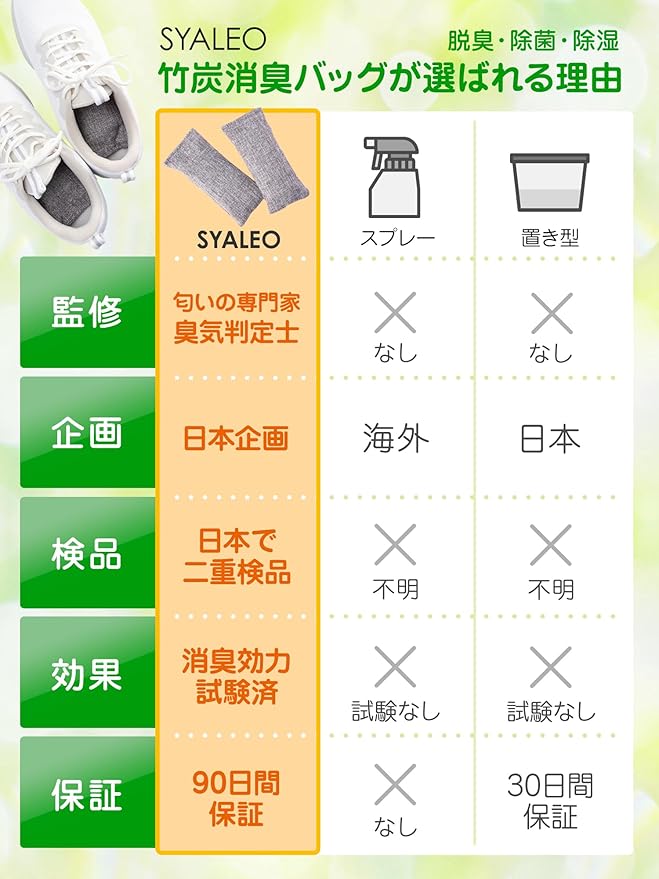 ⭐️【 消臭 効力試験実施】 一般財団法人カケンテストセンターにて、 消臭剤 効力試験を実施。 靴 のムレ臭の成分のひとつであるイソ吉草酸に対する 消臭 効果を確認。(空間の大きさ、空気の対流などによって、 消臭 効果が異なる場合があります)また、お客様に安心して商品をご利用いただくために、 消臭炭 はISO9001認定工場のみで製造しており、検品など徹底した品質管理の元で販売させていただいております。
