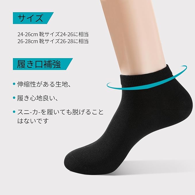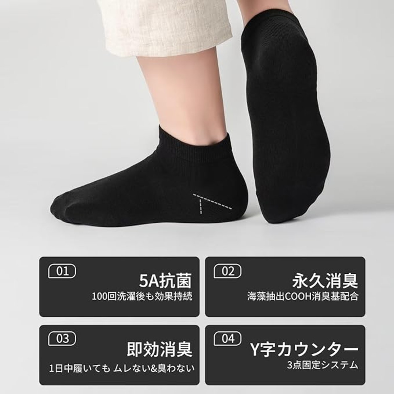 [BooGedada] [瞬間消臭] 臭わない・ムレ軽減|メンズ消臭くるぶしソックス 5足組|24-28cm実寸フィット|通学通勤に最適 通気性&吸湿性に 抗菌防臭 ギフトボックス付 靴下 メンズ 夏 | etshop