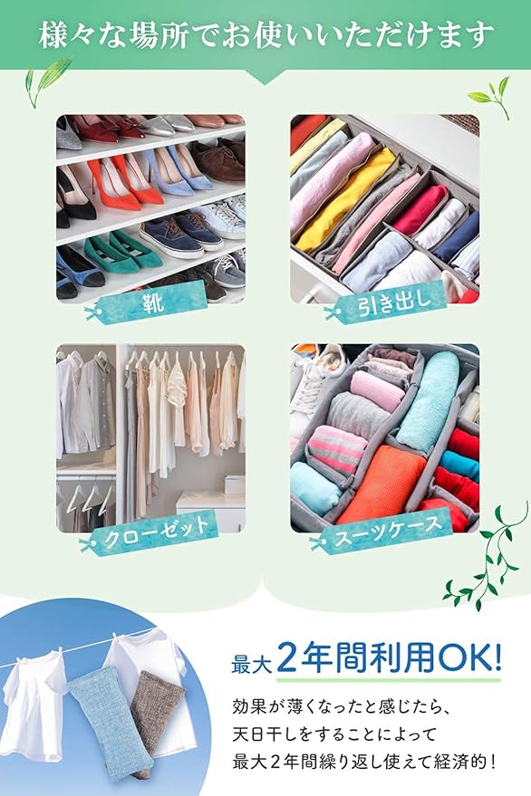 【様々なシーンで】靴箱 タンス 衣装ケース バッグ スーツケース の中など様々な場所でご利用いただけます。また、スニーカー 安全靴 革靴 ブーツ ヒール など幅広く使用可能!