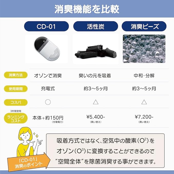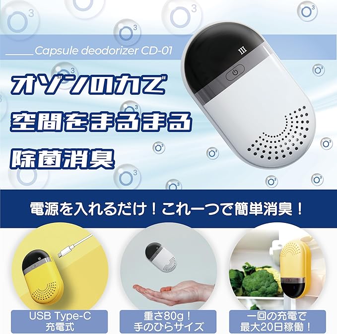 ✅ [手軽に消臭] 本体の電源をONにして冷蔵庫や下駄箱、クローゼットに入れるだけで空間の空気をオゾンに変換し、消臭をします。時間が経つたびに空間のオゾンが増えるので消臭を実感しやすくなります。