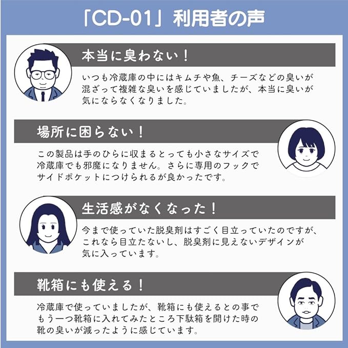 ✅ [コンパクト&軽量デザイン] サイズ:約93 53 30mm 重さ:約75gの手のひらサイズのコンパクトデザインだから邪魔になりません。冷蔵庫の中でも省スペースで使えて、置いておくだけでオゾンを生成し消臭をします。専用のハンガーでドアに挟むこともできるので収納スペースを潰すこともありません。