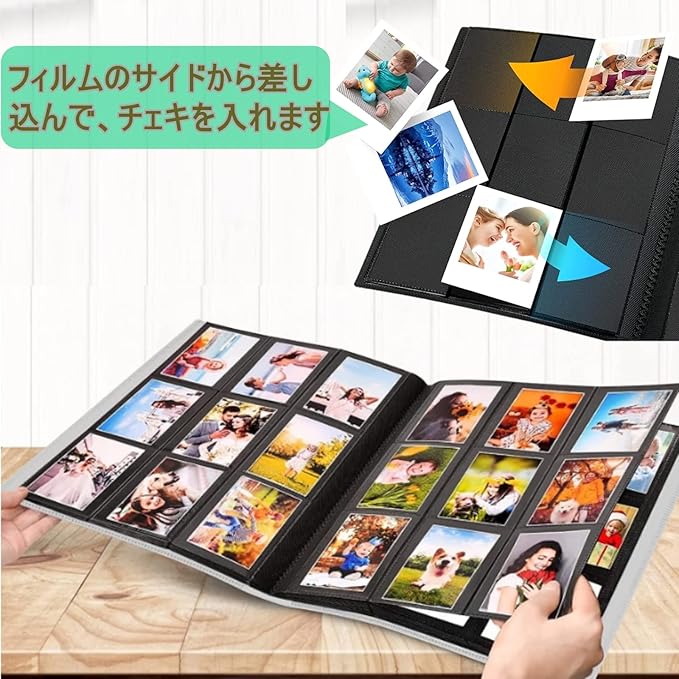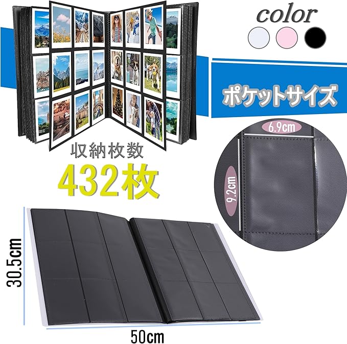 見開き収納・432枚のチェキ・ポラロイド写真の保管が可能な大容量アルバム。撮るばかりで保管に困っていたチェキ等のポラロイドをこれ1冊で整理して綺麗に保管できます。