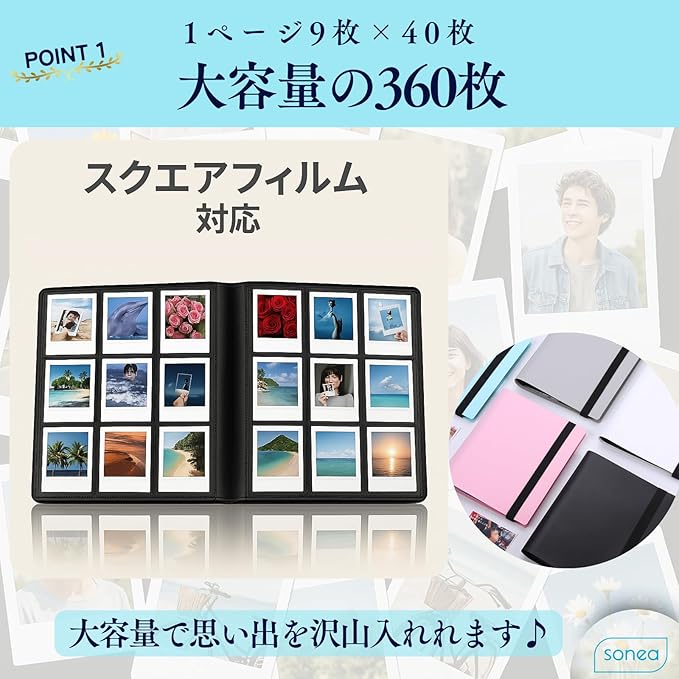 【大容量160枚収納】たっぷり160枚のチェキを収納可能。ホコリや汚れから写真をしっかり保護し、大切な思い出を長く美しく保管できます。サイズ:縦21 横17.5 幅2.5 cm