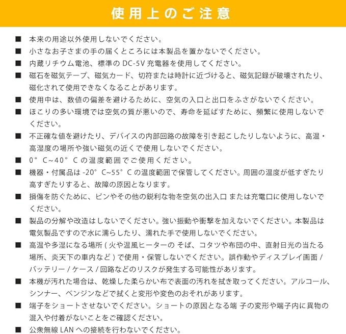 【USB充電式&設定不要】<温度測定範囲>-10~60℃( 2℃) <湿度測定範囲>5%~99%RH( 5%RH) <待機時間>約9時間<入力充電>DC5V <サイズ>93*72*42mm