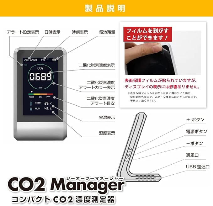 換気のタイミングが一目でわかる、コンパクトCO₂濃度測定器!