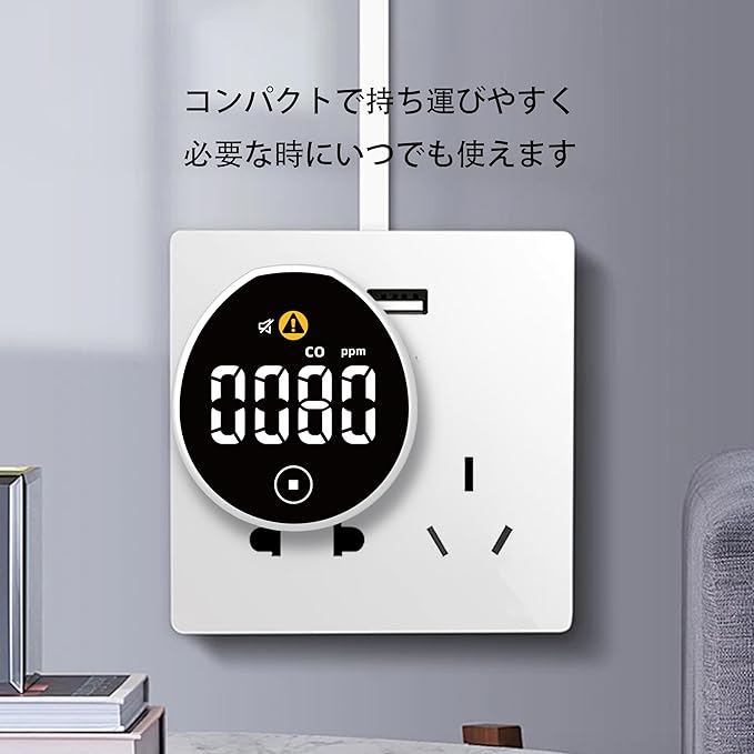 ♀️【USB給電式COモニター】車中泊やキャンプに最適なコンパクト設計。5V-1A対応でキャンピングカーでも簡単使用できる、耐久性に優れた小型携帯用の一酸化炭素チェッカーです。