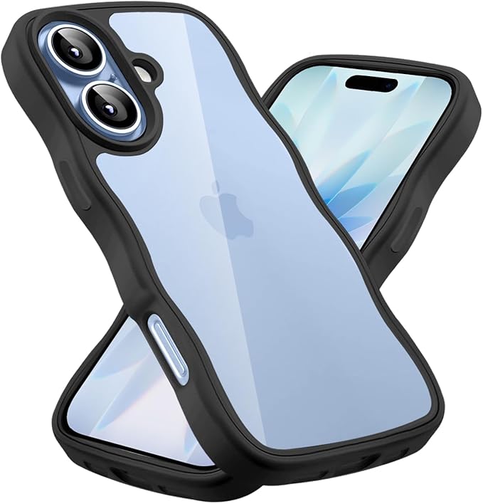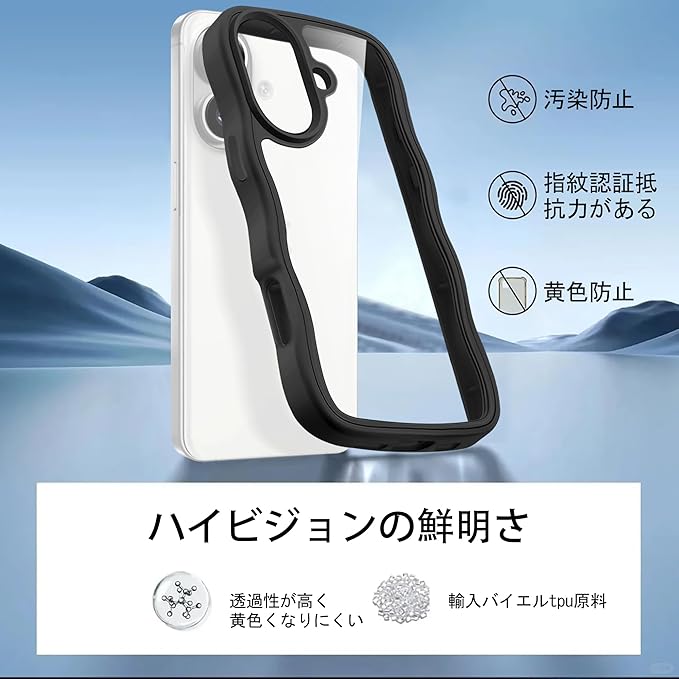 iPhone 17 用 ケース クリア かわいい 波状フレーム うねうね 耐衝撃 アイフォン 17 用 スマホケース 滑り止め 人気 可愛い カバー 落下防止 ワイヤレス充電対応 (ブラック) | etshop