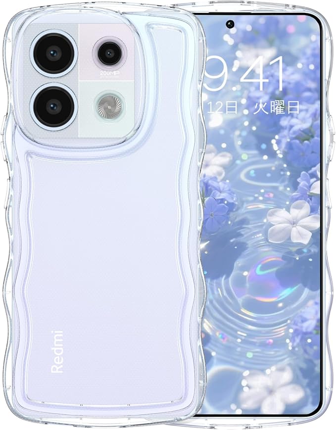 GUAGUA Redmi Note 13Pro 5G ケース クリア ウェーブ 透明 ソフト TPU ケース うねうね 人気 バンパー 耐衝撃 超軽量 薄型 アクスタが入る スマホケース Redmi Note 13Pro 5G ストラップホール付き シャオミ リドミー ノート 13プロ ケース なみなみ カバー(クリア 純透明 ) | etshop