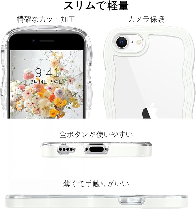 BENTOBEN iPhone SE 第3世代 用/iPhone SE2 / iPhone8 / iPhone7 ケース クリア TPU+PC 韓国 可愛い ウェーブ ソフト 滑り止め 薄型 軽量 耐衝撃 おしゃれ スマホケース ストラップホール付き アイフォン SE3 SE2 8 7 ケース 4.7インチ ホワイト | etshop