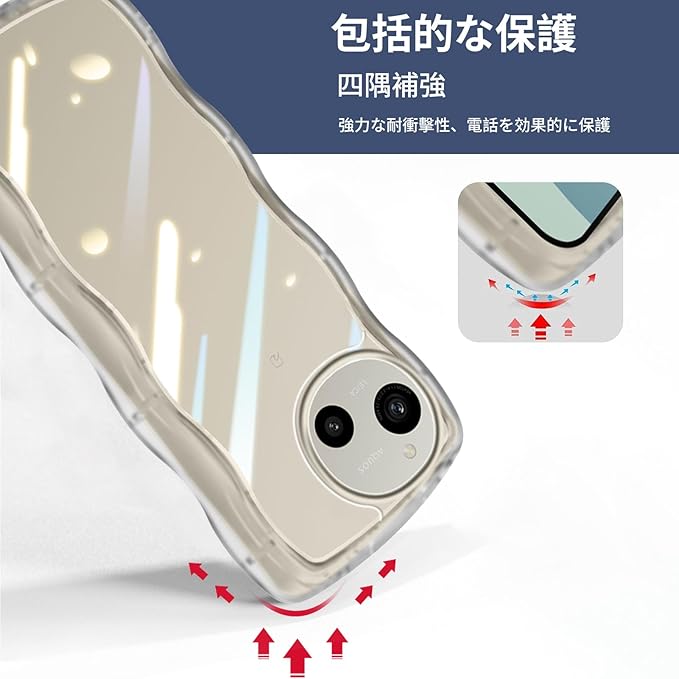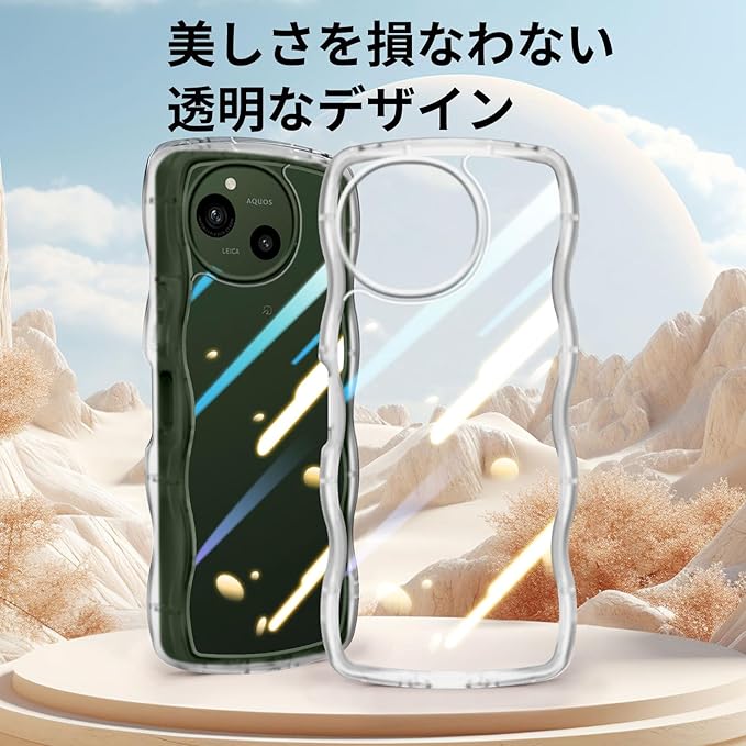 AQUOS R9/R10 かわいい ケース クリア 波状フレーム うねうね 耐衝撃 SH-51F/SH-51EE スマホケース 透明 滑り止め 人気 可愛い 女性用 女子向け アクオス R9/R10 カバー 落下防止 ワイヤレス充電対応 (クリア) | etshop