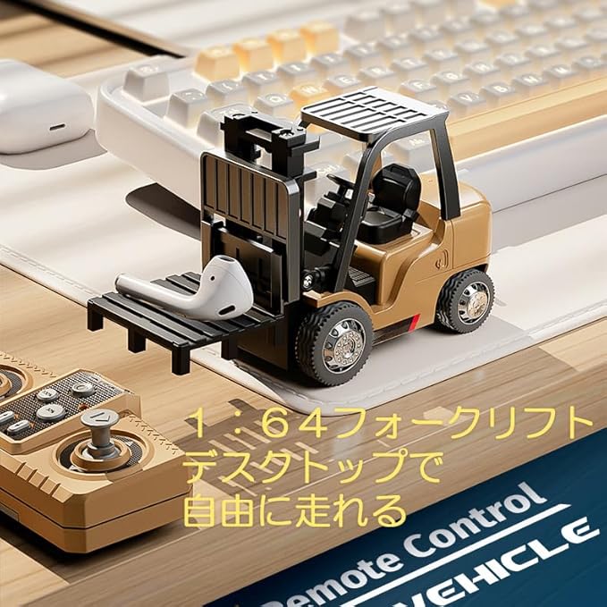 【2-in-1 クレーン&フォークリフトモード】1:64スケール合金製ラジコン(全長約11cm 幅約4cm)は付属アタッチメントでクレーンとフォークリフトに変形。2.4GHzリモコンで6種類の精密操作が可能:前進/後退・左右旋回・荷物昇降・丸太や小箱を押す動作。お子様の好奇心を刺激し、大人も満足するホビー級のリアリズム。