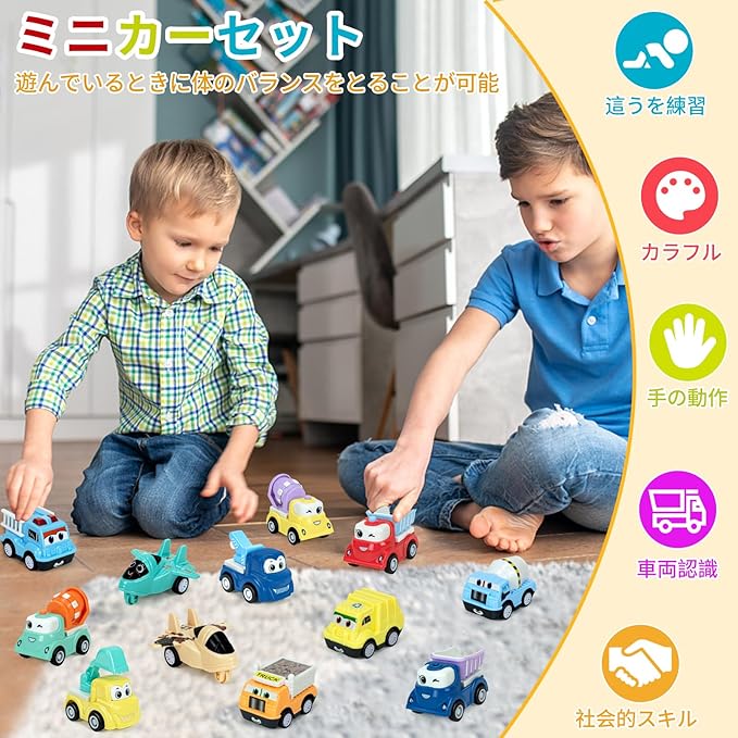 【子供のハイハイを促す】車おもちゃの形はかわいいで子供を惹きつけます。車が動いているとき、子供は追いかけたりハイハイしたりします。子供が総合的な運動能力を発達させ、歩く、走る、遊んでいるときに体のバランスをとることを可能にする大きな筋肉を制御する方法を学ぶのに最適です。