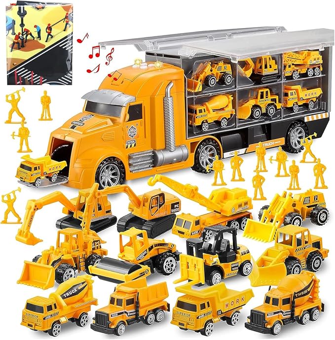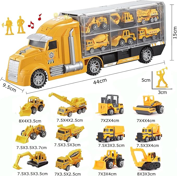 【大人気な建設車両おもちゃセット登場!】大きい音楽収納車X 1、ミニカーセットX 12 、80X70CMマップX 1、ABS製ミニ建筑労働者X 12、高品質合金とABSから作っています。安全な素材で、壊しにくいし長持ちになります。