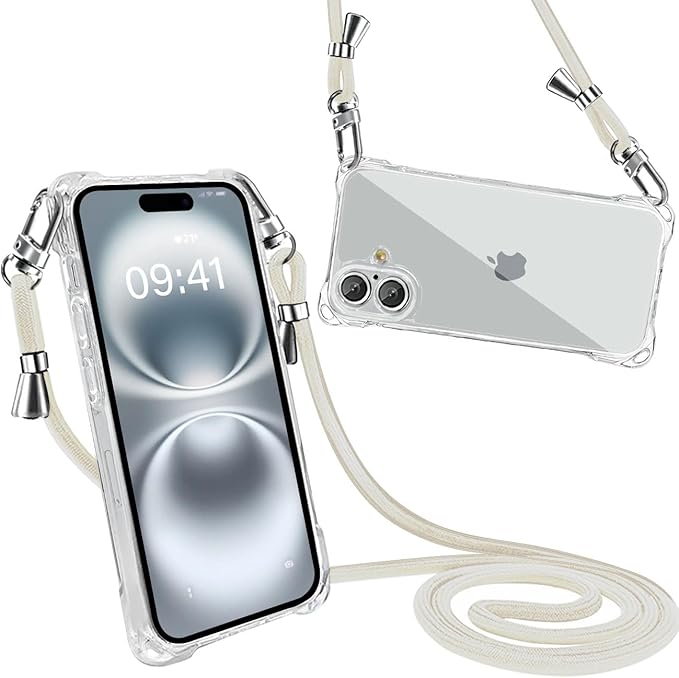 iPhone 16 ケース ショルダー クリア 肩掛け 首掛け アイフォン16 スマホケース ワイヤレス充電対応 カバー 耐衝撃 透明 軽量 全面保護 人気 韓国 柔軟 高質感(ホワイト) | etshop