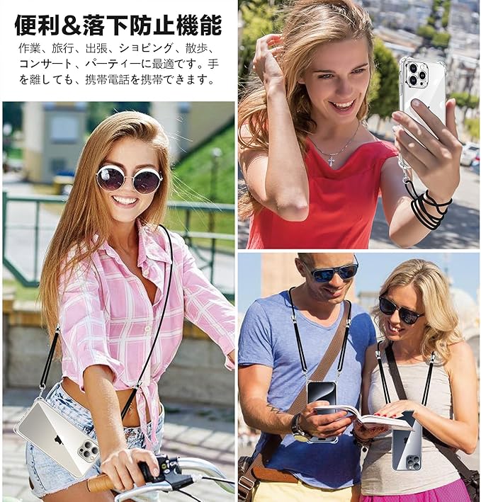 iPhone 14 ケース クリア [1枚ガラスフィルム付き] ショルダー ストラップ付き iPhone14 スマホケース アイフォン14 カバー 耐衝撃 薄型 軽量 TPU スマホ シリコン カバー 紐付き 斜めがけ 織りストラップ付き 肩掛け 縦/横 2WAY 調節可能なショルダー クロスボディ ファッションデザイン (透明) | etshop