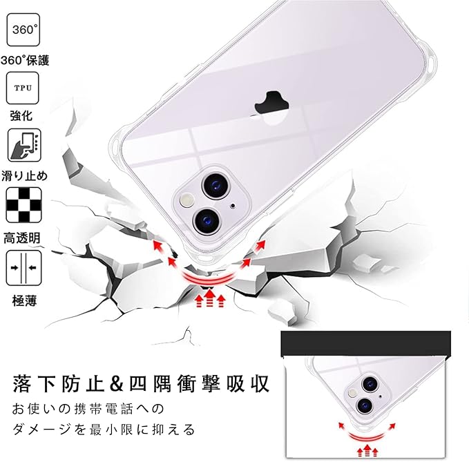 【保護機能】レーム部分とカメラのフチを高く設計し。平らな場所においても、液晶画面とカメラレンズに直接触れることがなく、ケースの四隅部分に"衝撃吸収テクノロジー"を採用し、これにより角からの衝撃を受けてもその隙間がクッションの様に本体への衝撃を吸収します。万が一スマホを落としてしまった場合でも、落下時のダメージを最小限に抑えることが可能となっており。