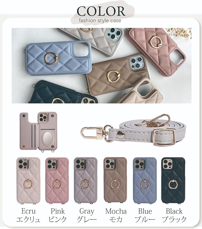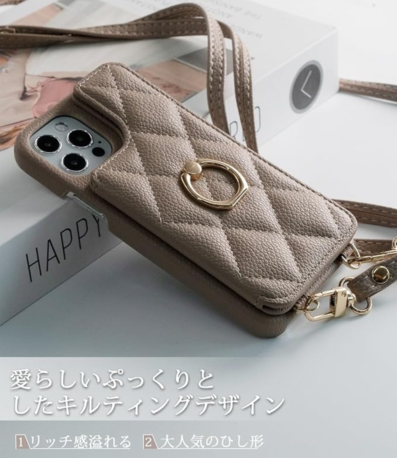 for iphone12 proとの互換性あり ケース ショルダー キルティング いphone12との互換性あり 手帳型 背面 カード 収納 12pro 可愛い ショルダーストラップ 耐衝撃 マトラッセ ミラー付き リング付き スマホケース 12 肩掛け 斜め掛け 12プロ ストラップ付き かわいい 鏡 カード入れ チェック柄 | etshop