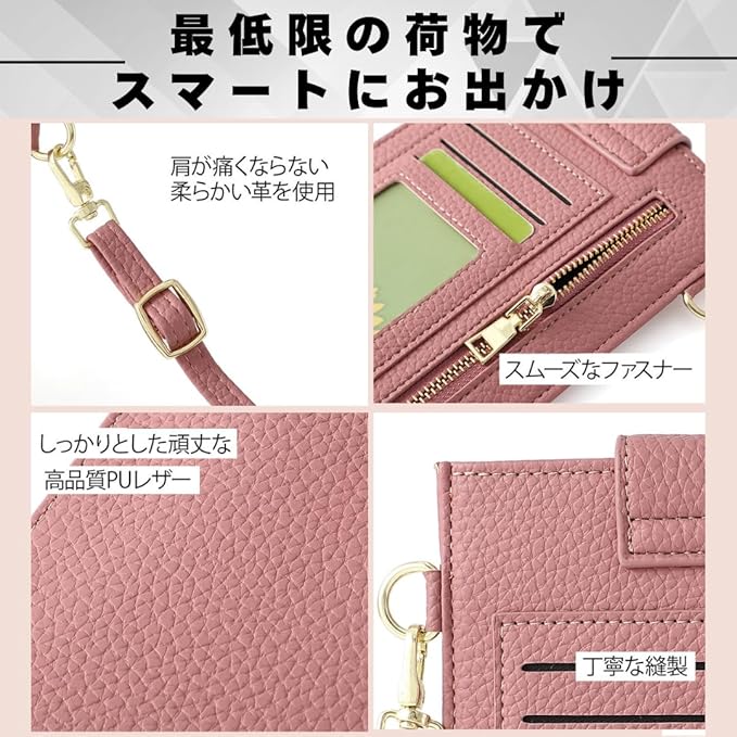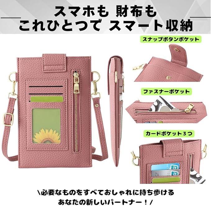 【スマホも財布もこれひとつで完結】 スマホや財布、小物をスマートに収納。お財布ポシェットとして使え、これひとつで身軽にお出かけできます