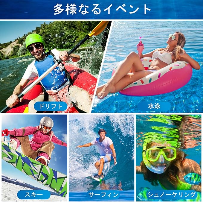 「水に浮く・スポンジ設計」※この防水スマホケースには水に浮くことができます。「U型フローティング構造」が採用されており、中心にスポンジ製で、ボーダー部分が空気がいれたため浮き輪となれて、仮に海に落とされても、とにかく沈みません。更に、このデザインで落下した衝撃を分散・吸収し、中身のスマホがダメージを受けず、全方位からしっかりと守られます。