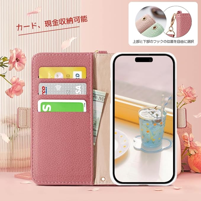 【高級素材採用、全面保護】耐熱性と柔軟性を誇る上質なPUレザーで作られた上、素材の表面に手触りは非常に良いフィット感を与えられ、落ち着いてる色、シンプルなデザインこそ、女性の高級感を引き立たせる;滑りにくく、落下時の衝撃を効率よく吸収するようにケースの各コーナー内側が設計されています。手帳型ならではの全面保護機能でディスプレイはもちろん、背面もしっかりガードします。さらにカメラレンズ保護構造でスマホ本体を傷から360度しっかり保護してくれます