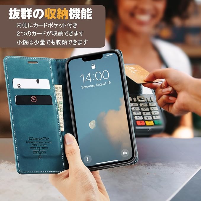 【全面保護】 手帳型ケースを取り付けると、電話の本体がカバーされ、スクリーンと背面が保護され、耐衝撃と油污の付着が軽減されます。