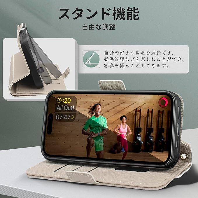 【カード収納】いphone16eスマホケース内部には4つのカードスロットを装備し、貴重なカードや軽いレシートなどを収納することができます。外側のサイドポケットには、小銭や鍵など日常生活で必要になることが多いものを収納することができます。内ポケットを開ける必要がないので、日常的に気軽に取り出せます。スマートフォン決済が普及し、財布を持ちたくない時代に、財布として使える機能を搭載しました。収納スペースが充実しているので、通勤・通学にも最適です。