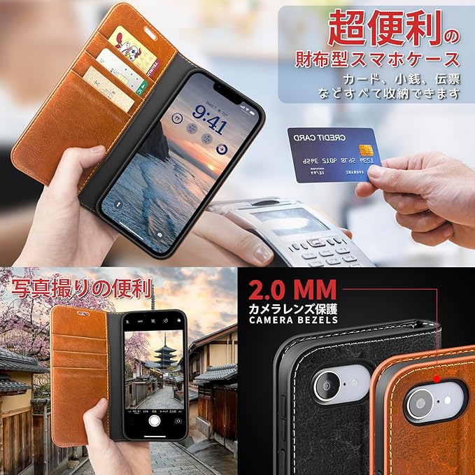 SKIASE iPhone 16e 用 ケース 手帳型 本革 高級レザー マグネット無し アイフォン16e 携帯カバー いphone16e 財布型 横置きスタンド機能 カード入れ カード収納 耐衝撃 全面保護 軽量 薄型 落ち着いた色 | etshop
