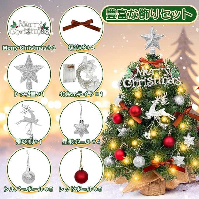 特徴 豪華な飾りつけ21点付き+ledライト付き