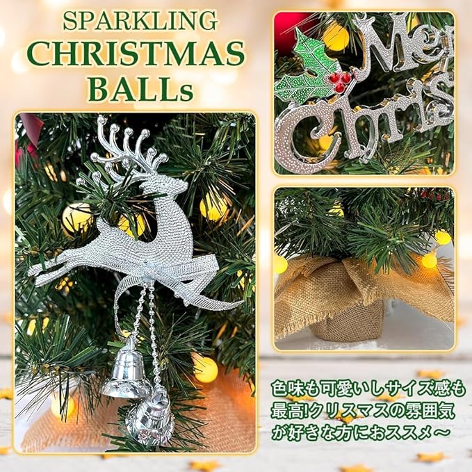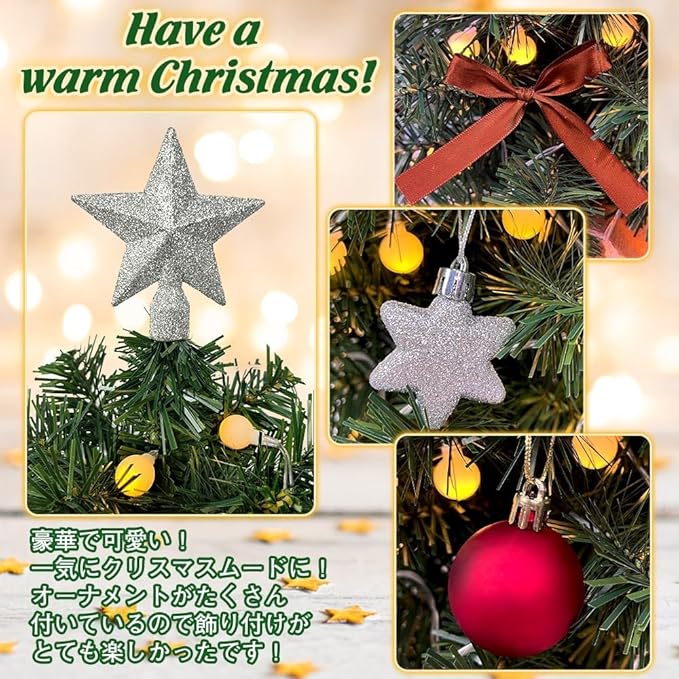 ⭐【豪華な飾りオーナメント21点付き】英語Merry Christmas看板、鈴付きのトナカイ、クリスマスツリートップ星(13cm)、クリスマスボール(直径4cm)、蝶结びなどのオーナメントがたくさん付いているので、飾りつけがとても楽しかったです~