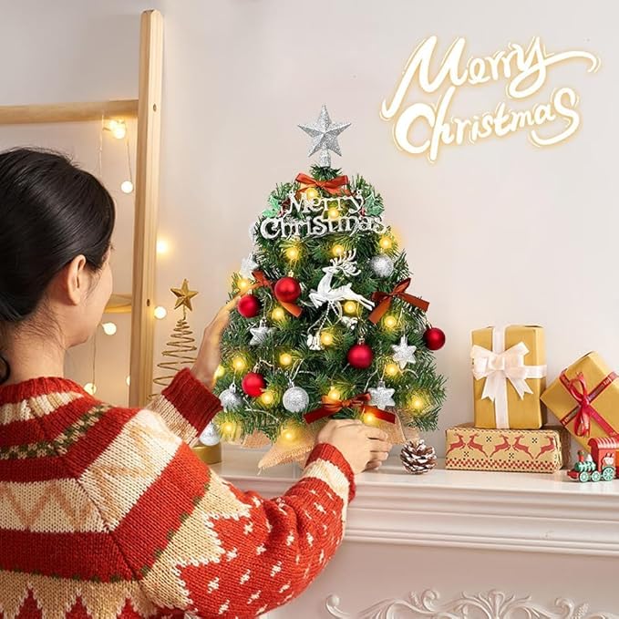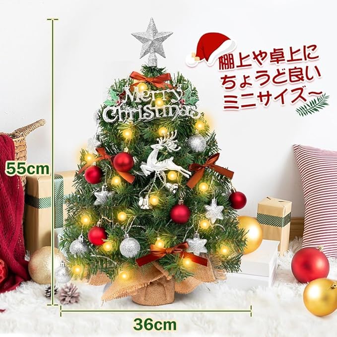 yazi クリスマスツリー 卓上 枝数80本 ミニ クリスマスツリー ledライト付き 光る 高濃密度 【豪華飾りつけ21点付き】 小型55-60㎝ クリスマスボール・トップ星・蝶結びオーナメント 雰囲気満々 北欧 おしゃれ クリスマス雑貨 飾り | etshop