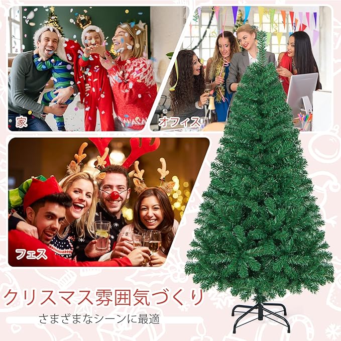 【自由なデコレーションを楽しめるデザイン】枝の間には十分なスペースがあり、お気に入りのオーナメントやLEDライトを自在に飾ることができます。飾り付け次第で、シンプルにも華やかにも印象を変えることができるのが魅力です。家族や子どもたちと一緒にデコレーションを楽しめば、心に残るクリスマスを演出できます。