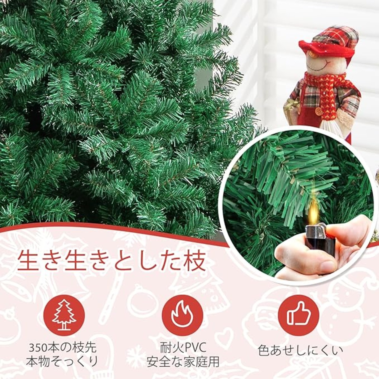 ◆本体サイズ:高さ150cm x 直径75cm◆枝の数:350本◆本体重量:約2.2kg◆素材:防炎PVC、鉄(※オーナメントやライトなどの飾りは別売りです)