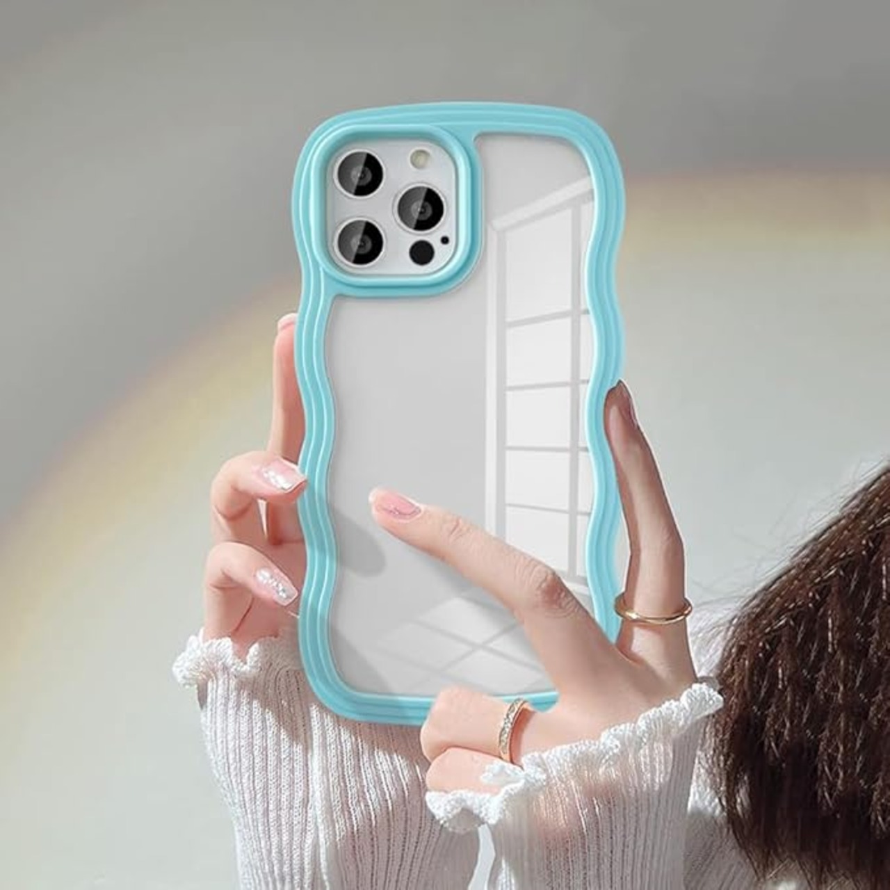 UEEBAI 対応 iPhone 12/iPhone 12 Pro 用の ケース ソフト TPU カバー 可愛い おしゃれケース 透明 ウェーブ デザイン スマホケース ワイヤレス充電対応 軽量 薄型 耐衝撃 人気 波型 バンパー スマホケース - シエラブルー | etshop