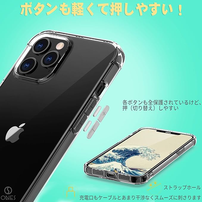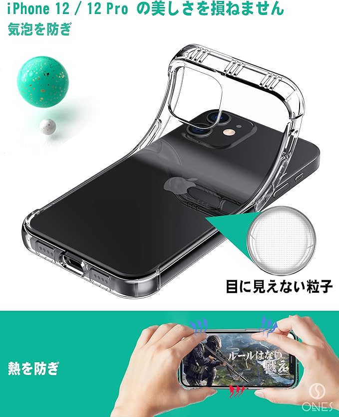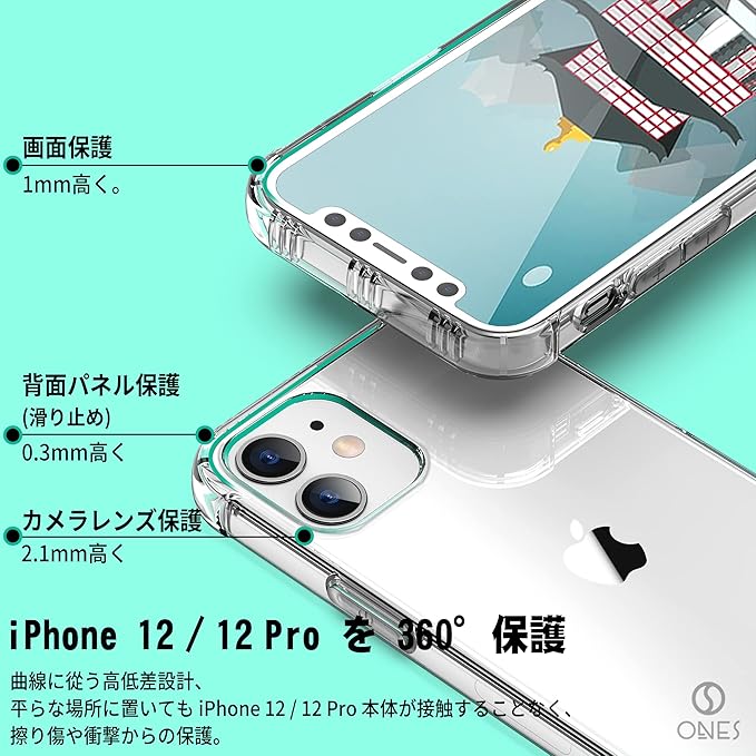 ONES iPhone 12Pro/12 ケース 6.1インチ用 HD全透明 米軍MIL規格 超耐衝撃 『 360 エアバッグ、半密閉音室 』〔 画面 レンズ保護、滑り止め、ストラップホール 〕薄型 Qi充電 超軽量 衝撃吸収 HQ TPU クリア カバー | etshop