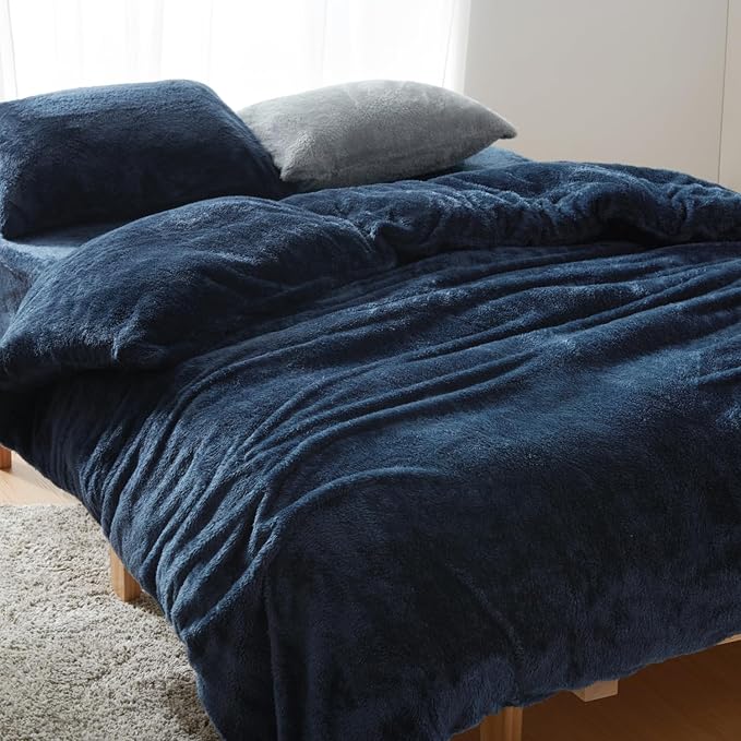 クモリ(Kumori) 掛け布団カバー シングル あったか 長毛 贅沢な肌ざわり 軽い もこもこ 毛布にもなる 2WAY 静電気防止 丸洗いOK 防寒対策 冬用 秋 冬単品売り 掛けふとんカバー ふとんカバー 掛けカバー 150X210cm ネイビー | etshop