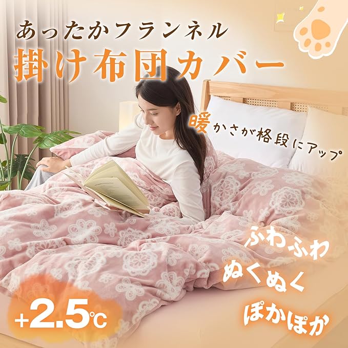 【ふわふわで保温性高い・フランネル生地掛け布団カバー 】高密度のフランネル生地を使用し、着心地が軽い同時に保温性が高いです。極細纎維の隙間に暖気を取り込み、さらに空気の層が外部の冷気を跳ね返します。その細かな纎維一つ一つの間に空気を取り込むことで、体温を逃さずしっかり保温。あたたかさをキープしてくれます。ぬくぬくの暖かさで、寒い時期には欠かせないアイテムです。