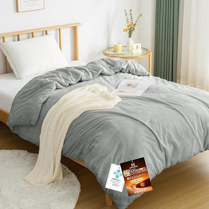 Matdeco 掛け布団カバー シングル 冬 あったか 羽毛布団・毛布カバー 暖かい フランネル 蓄熱保温 厚手 極細マイクロファイバー 毛布にもなる掛け布団カバー 静電気防止抗菌防臭 蓄熱保温 洗える 速乾 スナップボタン8箇所&ダブルファスナー 着脱簡単 丸洗いOK (シングル・150X210cm グレー) | etshop