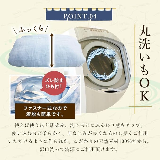 【丸洗いOK】使えば使うほど馴染み、洗うほどにふんわり感がアップ。使い込むほど肌なじみがよくなります。たくさん洗って清潔にご利用下さい。