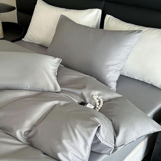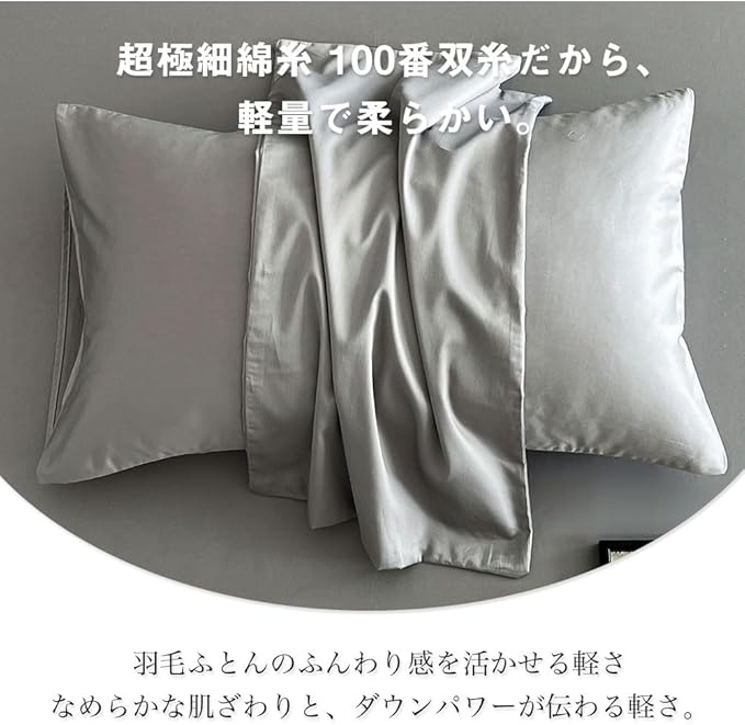掛け布団カバー シングル 綿100% サテン織り 100番手双糸 超長綿 400本高密度生地 ホテル仕様 防ダニ 掛けふとんカバー ふとんカバー 布団カバー シルクのような肌触り 北欧 滑らか 柔らかい (150x210cm, グレー) | etshop