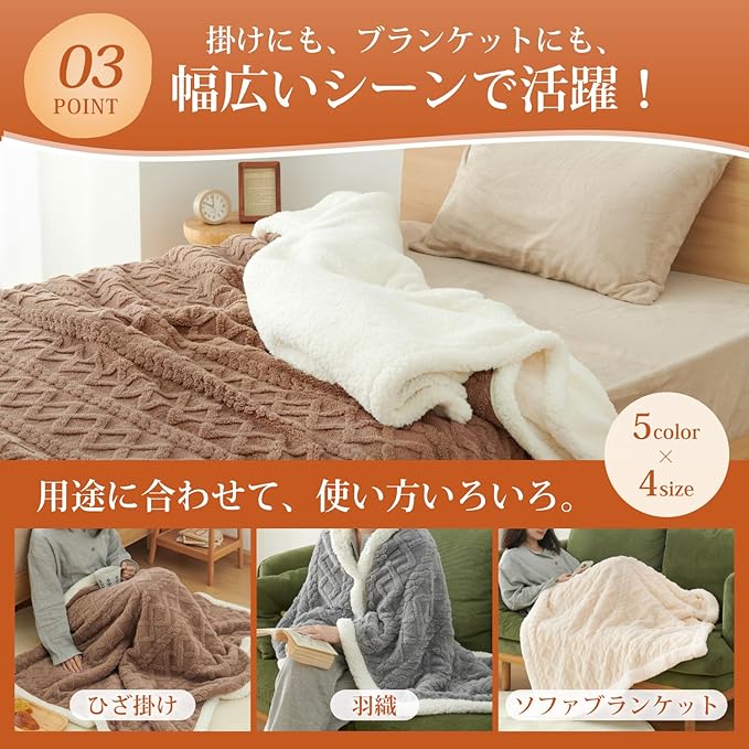 【あったか二重構造】表面はふわふわしたフリース生地で、裏面はもこもこなシープボア生地で、2枚を合わせることで、生地の間に空気の層ができ保温性に優れ、両面気持ちよくあたたかくお使いいただけます。