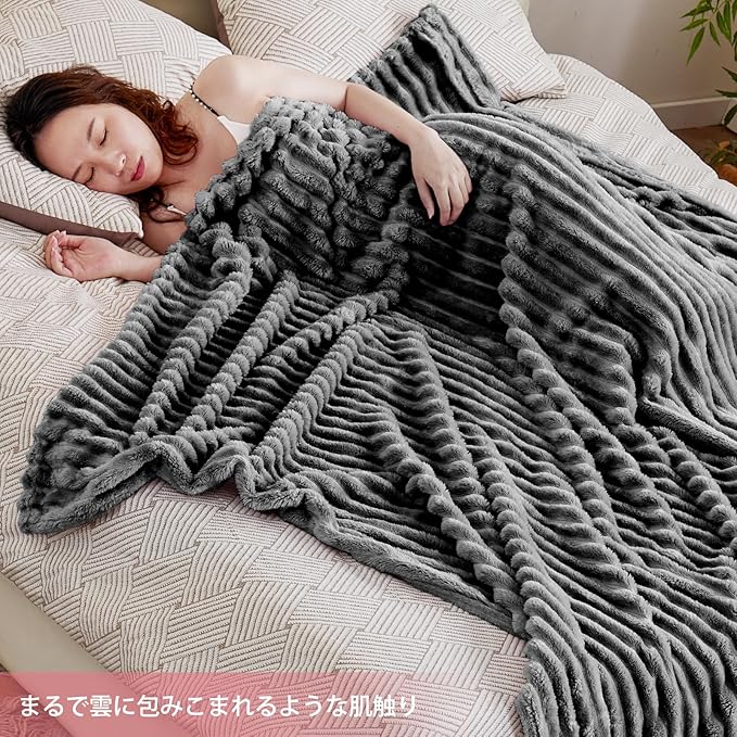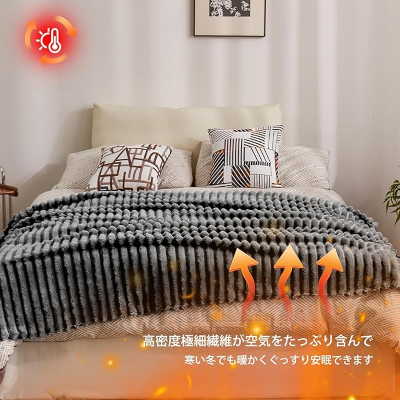 【高品質素材&雲のような肌触り】当社の毛布は高品質ポリエステル超極細繊維を採用し、耐磨耗性に優れ、通気性が良好です。高密度の極細繊維がふんわりとした柔らかな肌触りを実現し、長時間の保温効果と共に、贅沢な包み込み感をお約束します。