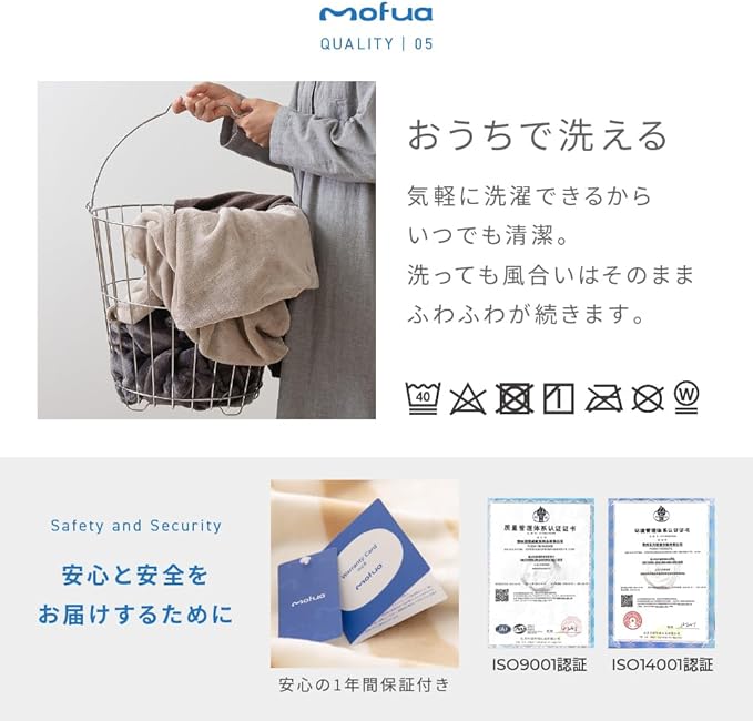 さらに、【 mofua(モフア)あたたかさをためこむ 4層 毛布】は、ご自宅の洗濯機で丸洗い可能です。さらに、なかわたの片寄りを防ぐキルト仕様を施しているので洗っても安心です。