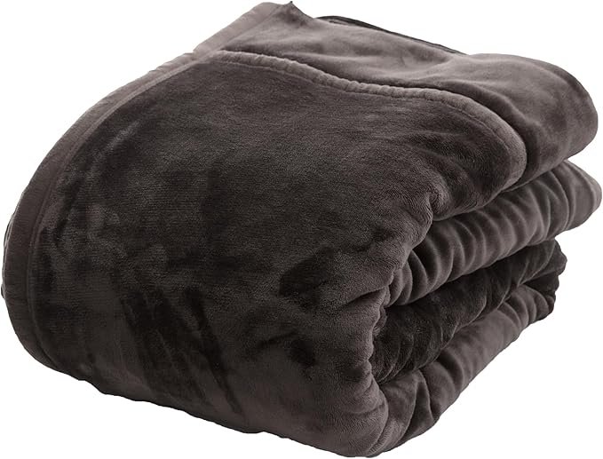 AQUA(アクア) 綿入り 毛布 厚手 ブランケット 冬 mofua モフア シリーズ シングル (140 200cm) チャコールグレー 4層構造 2枚合わせ 衿付き 56980168 | etshop