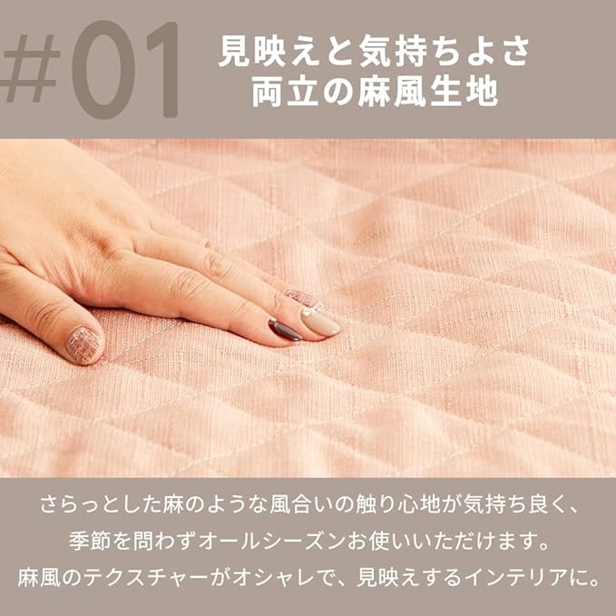 【麻風タッチでオールシーズン快適】シャリっさらっと気持ちいい麻風タッチのチェアカバー。さらっとした触り心地なので、オールシーズン使えます。